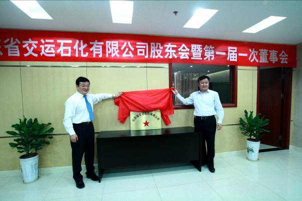 5月17日,山東省交運石化有限公司揭牌成立,同時召開了股東會暨第一屆一次董事會。集團公司總經理、黨委副書記王謙,中國石化山東石油分公司副總經理趙順本,作為雙方股東代表為公司成立揭牌。會議由集團公司副總經理田景東主持。