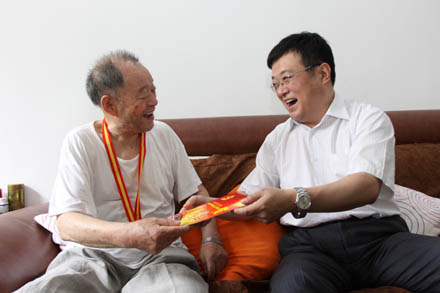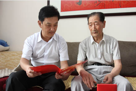 一大早,在工會主席張志堅的陪同下,集團公司董事長吳宗昌就來到了離休老黨員紀文義、楊永幸的家里,向他們贈送了中央組織部的慰問信、山東省委的節日賀卡和集團公司頒發的證書和獎章。兩位老黨員與吳董事長親切回憶了革命戰爭年代、改革開放時期以及目前公司的發展狀況,對集團公司的發展壯大非常欣慰,并對公司下一步的發展提出了一些建議。吳董事長代表集團公司感謝離退休老黨員對企業發展所作出的巨大貢獻,希望他們繼續關注和支持公司的發展,注意身體,安度晚年。