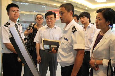在集團公司總經理、黨委副書記王謙、黨委副書記楊國強等領導的陪同下,全國青聯委員會委員一行先后視察了總站候車大廳、服務臺、售票處、檢票處、駕駛員報班處和安全運營管理監控中心。在總服務臺,各位委員對各項便民創意服務舉措頗感興趣;在報班處,他們親身感受了人臉識別系統、酒精檢測儀等測試效果;在安全監控中心,聽取了王謙總經理關于3G 視頻監控系統運行情況的詳細介紹,并在總站二樓會議室與集團公司及車站領導進行了交流溝通。