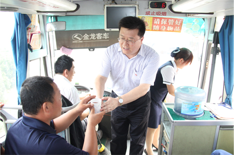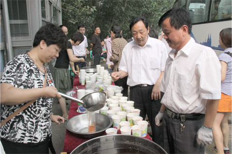 721,集團公司工會辦與總部黨支部組織四十余名總部黨員干部組成暑期“送清涼”服務隊,來到位于濟青高速公路上的刁鎮高速公路客運站,冒著30多度的高溫為過往客車的乘車旅客和駕駛員,送去一碗碗爽口的綠豆湯。一上午的時間里,共為過往近百部客運車輛、近3000余名旅客送去了夏日的清涼。集團公司董事、工會主席張志堅、黨委副書記楊國強、紀委書記劉鳳儀、總經濟師馮唯一、總經理助理齊杰帶隊參加了此次“送清涼”活動。