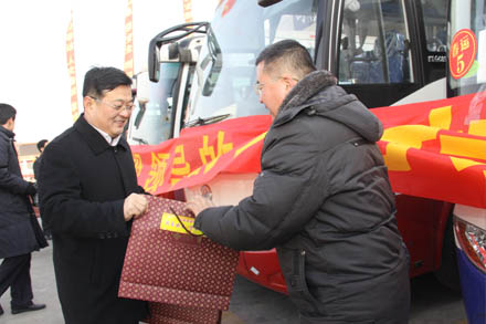 2012年1月22日下午,集團公司董事長、黨委書記吳宗昌、總經理、黨委副書記王謙等集團公司領導先后來到總站南、北兩區,親切慰問仍然工作在春運一線的干部職工。兩站前廣場鞭炮齊鳴、煙花共舞,同慶即將到來的2012年新春佳節。