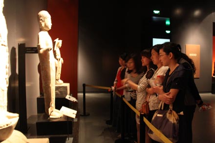 山東省博物館是山東省文化建設的重要標志,也是濟南城市建設的新亮點,館藏文物20多萬件,為傳承齊魯文明、弘揚優秀傳統文化發揮著重大作用。在講解員的引導下,全體黨員、團員依次參觀了“佛教造像藝術展”、“漢代畫像藝術展”、“明代魯王展”、“館藏書畫展”、“孔子文化展”、“山東歷史文化展”等展廳。大氣莊重的佛教造像,精煉質樸的漢代畫像石,揮灑自如的書法作品,博大精深的孔子文化,精美豐富的瓷器,巧奪天工的魯繡,源遠流長的山東文化等都給全體團員青年留下了深刻印象。