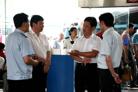 6月10日,端午小長假的第一天,集團(tuán)公司吳宗昌董事長一早冒雨來到濟(jì)南長途汽車總站,現(xiàn)場視察端午節(jié)旅客運(yùn)輸工作。并與總站站長、客運(yùn)公司經(jīng)理、安保部部長等相關(guān)負(fù)責(zé)人就節(jié)日運(yùn)輸旅客服務(wù)工作、安全保障工作、運(yùn)力準(zhǔn)備情況、客流動態(tài)等進(jìn)行了詳細(xì)了解。于此同時(shí),吳董事長還對總站剛剛設(shè)立的交通郵政戰(zhàn)略合作示范點(diǎn)進(jìn)行了現(xiàn)場指導(dǎo)。吳董事長對集團(tuán)各單位高效完備的節(jié)日運(yùn)輸保障機(jī)制以及安全有序的運(yùn)營秩序表示滿意。