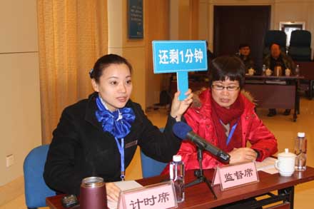 演講答辯按照競(jìng)聘職位分組進(jìn)行,共設(shè)1個(gè)主會(huì)場(chǎng)、4個(gè)工作室,會(huì)前通訊工具統(tǒng)一保管,考前、考后人員不得隨意外出,相互不見(jiàn)面、不交流,確保了考場(chǎng)紀(jì)律和公平性。每位競(jìng)聘人員通過(guò)10分鐘的演講介紹自己的基本情況、工作簡(jiǎn)歷、競(jìng)爭(zhēng)優(yōu)勢(shì)、工作實(shí)績(jī)和對(duì)競(jìng)聘崗位工作的設(shè)想,并在5分鐘內(nèi)完成審題、思考和答辯。評(píng)委按照《演講答辯評(píng)分表》的標(biāo)準(zhǔn)進(jìn)行現(xiàn)場(chǎng)打分,每組職位演講答辯結(jié)束后統(tǒng)一匯總計(jì)分。
