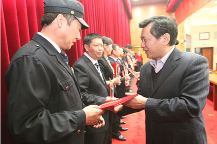 您現在的位置是:首頁 > 集團要聞 集團公司參加“中國道路運輸風范人物領袖品牌事跡報告會” 次 集團要聞 發布時間:2014-03-25 17:31:10 集團公司參加“中國道路運輸風范人物 領袖品牌事跡報告會” 2014年3月24日,“中國道路運輸風范人物領袖品牌事跡報告會”在交通運輸部機關舉行。報告會集中展示了“中國道路運輸風范人物”和“中國道路運輸領袖品牌”的優秀事跡、先進經驗和發展理念。濟宇高速總經理康嶺、集團公司黨委組宣部副部長劉東方、濟宇高速總技術指導師賈湘鳴參加了報告會,會上,賈湘鳴作為“最美客車駕駛員集體”的代表,得到了交通運輸部黨組成員、副部長馮正霖的親切接見。 “中國道路運輸風范人物領袖品牌事跡報告會”現場 交通運輸部黨組成員、副部長馮正霖為賈湘鳴頒獎 賈湘鳴與交通運輸部黨組成員、副部長馮正霖合影留念 (黨委組宣部)