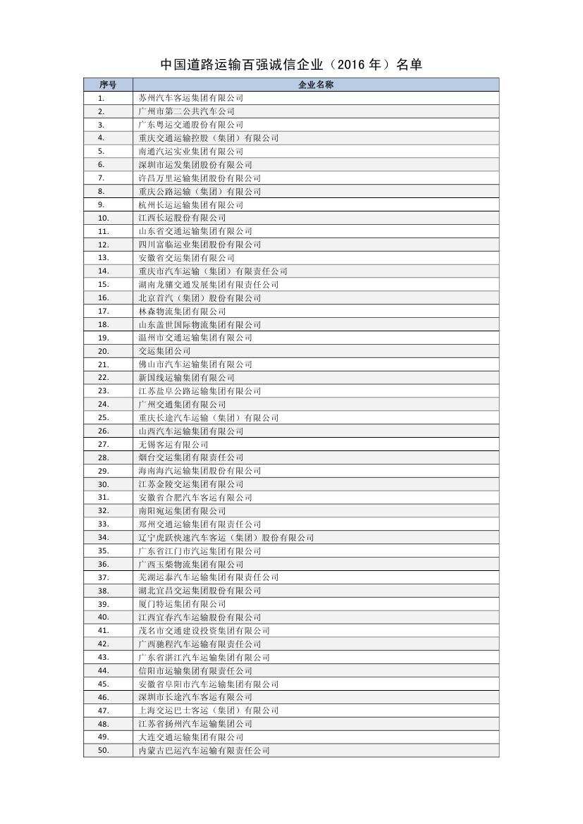 6月24日,中國道路運輸協會發布了2016年度道路運輸百強誠信企業名單,集團再度榮獲“全國道路運輸百強誠信企業”稱號,排名第十一位,比去年前進一個名次。