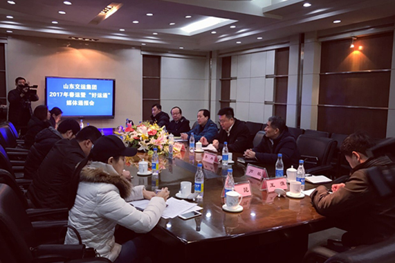 112日,山東電視臺、齊魯電視臺、濟南電視臺、《大眾日報》、《齊魯晚報》、《濟南日報》、《濟南時報》、《山東交廣》、《濟南交通廣播》、齊魯網、大眾網、鳳凰網等30家新聞媒體記者出席了“山東交運集團2017年春運暨‘好運通’媒體通報會”。會上通報了集團公司春運期間各項運力準備、安全措施、技術維護、創新服務等系列便民利民舉措并現場演示了“好運通”微信公眾平臺應用方式。通報會由集團公司董事、黨委副書記楊國強主持,黨委組宣部、客運經營部、客運管理部、安保部、資產技術部、汽車總站等部室和單位新聞發言人參加了此次會議。