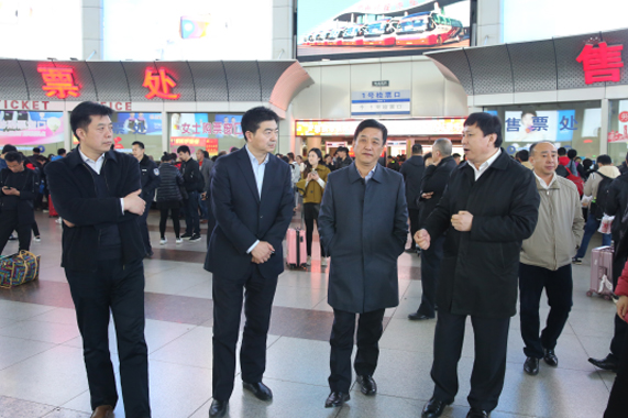 吳董事長一行先后視察了進站安檢處、售票處、總服務臺和檢票口,逐一了解運輸各項管理服務工作以及各線路班車運營情況,站長于承濤詳細匯報了節日運輸期間總站在安全管理、運力保障、優質服務、宣傳營銷等方面采取的具體措施。