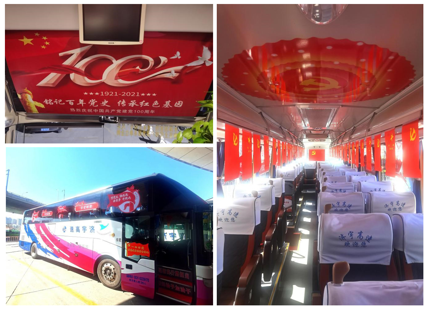 今年是中國共產(chǎn)黨成立100周年,為積極響應(yīng)習(xí)總書記在全黨開展黨史學(xué)習(xí)教育的號召,山東交運客運龍頭單位濟(jì)宇高速在已有的省內(nèi)4條紅色教育專線基礎(chǔ)上,新增省內(nèi)外13條紅色線路,推出以“銘記百年黨史,傳承紅色基因”為主題的學(xué)黨史教育專線。