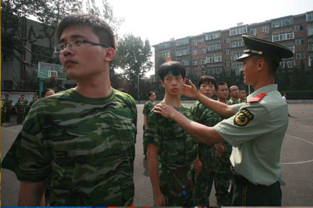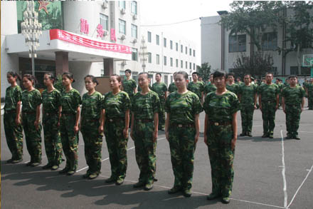 雖然已是初秋時(shí)節(jié),但艷陽高照的操場(chǎng)上,依舊讓人感受到“秋老虎”的威力。學(xué)員們身著迷彩服整齊列隊(duì),一絲不茍地在部隊(duì)教官的嚴(yán)格指導(dǎo)下,刻苦練習(xí)“站軍姿”、“起步,行進(jìn)”等軍訓(xùn)科目。看似簡(jiǎn)單的動(dòng)作,不僅是對(duì)訓(xùn)練者體力的考驗(yàn),更是對(duì)意志和耐力的磨練。幾個(gè)過程下來,學(xué)員們?nèi)己節(jié)窳艘律溃胰障碌拿骖a也愈加顯現(xiàn)出堅(jiān)毅神情。