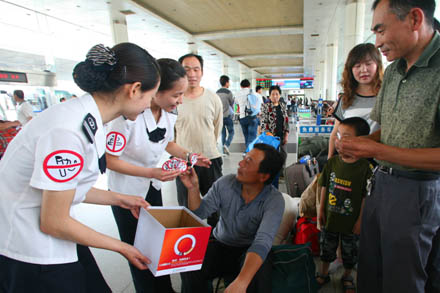 四是“六一”兒童節(jié)期間,總站針對身高超過150cm、年齡不超過14周歲的兒童特別推出“七彩蓓蕾會員卡”,憑卡購票可享九五折優(yōu)惠,向小朋友們發(fā)放了七彩風車等精美的兒童節(jié)禮物,總站員工還裝扮成可愛的“小丑”,與小旅客嬉戲玩耍。