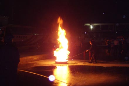 此次演習,是繼今年123日后的第二次消防演練。同時也是濟宇高速成立至今的首次夜間消防演習,為最大程度地模擬事故的驟發性,本次演練的總指揮由當夜值班領導擔任。演習開始,指揮領導首先將參戰人員兩人一組進行分配,依次進行火源撲滅練習。安保科負責人結合當晚的大雨,講解了油水混合時的火源蔓延可能性及撲滅注意事項。期間,各組參戰同志滅火動作規范、撲滅迅速,進一步增強了各消防重點崗位的同志們的消防意識,全面提升了撲滅初期火源的能力。