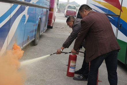 4月11日下午17:00分,第四客運(yùn)分公司組織公司全體管理人員、駕駛員和經(jīng)營(yíng)合作業(yè)主共120人,在辦公區(qū)和停車場(chǎng)進(jìn)行了“2014年春夏季車輛防自然消防應(yīng)急演練”。此次演練本著“預(yù)防為主、防消結(jié)合、綜合治理”的方針,邀請(qǐng)了濟(jì)南市正安消防培訓(xùn)中心于阿龍、天橋區(qū)交警大隊(duì)侯世久、天橋車管所宋磊等專家授課,集團(tuán)公司安保部副部長(zhǎng)楊世民、資產(chǎn)技術(shù)部副部長(zhǎng)王淮親臨指導(dǎo)工作。