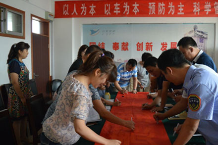 近日,第三客運公司舉行了《控事故·治違章·安全管理提升月》活動啟動儀式。活動由安全生產事故警示教育培訓周、隱患排查治理周、應急預案演練周和安全生產知識競賽四項活動組成。計劃在8月份,第三客運公司將集中開展應急預案演練、強化隱患排查治理、宣傳法律法規等活動,通過隨車行、GPS監控、教育培訓等手段,加強宣傳“強化紅線意識、促進安全發展”和“一崗雙責、綜合治理”的理念,達到嚴控違章駕駛等違規行為,杜絕較大以上行車責任事故的目標。其中,在8月13日開展安全生產宣傳咨詢日期間,公司全體職工參加了安全知識小競賽、安全謎語猜猜看、安全小知識普及、安全演講等一系列宣傳咨詢活動,聆聽了《生命是花,安全是根》演講,職工們積極參與活動的各個環節,氣氛熱烈,最后大家在橫幅共同簽字,表示將居安思危,防微杜漸,推動公司安全生產工作穩定發展。
