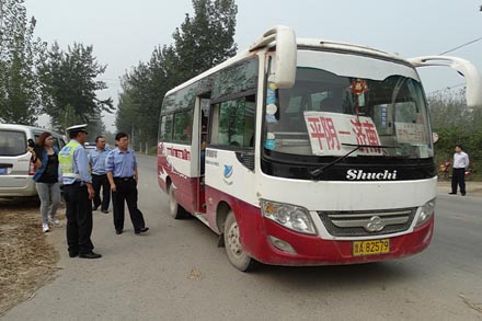 節前認真研究制定了《違章管理辦法》,根據當地車輛運行狀態及存在問題,對違法行為采用高壓線、零容忍的態度;9月25日,聯系平陰縣交通警察大隊車管所到平陰維修廠院內對通達公司110部營動車輛進行了嚴格臨檢,發放了臨檢合格證標志;9月26日,邀請平陰縣交通警察大隊交通科科長劉東到公司為全體駕駛員集中進行節前安全培訓,利用PPT等課件,直觀、生動的為駕駛員講解了安全法律、法規、案例分析以及行車違章行為的界定等相關知識;9月27日,與平陰縣交通警察大隊三中隊聯合,針對鄉鎮班車超員問題進行了一次安全檢查,對車上的馬扎、板凳等進行清查,對違章車輛按照《違章管理辦法》進行嚴肅處理。