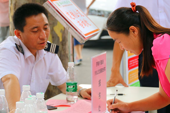 7月13日-15日,汽車東站組織干部職工赴濟南外國語學校,對報到新生進行“定制公交”現場招募。
