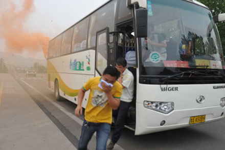 演習期間,模擬進行了車輛運行中突然起火后的乘客疏散、逃生、火災撲救等科目。自駕駛員發現起火,到開啟應急燈車輛緊急??浚蜷_應急逃生門,指揮疏散到全部乘員疏散完畢,整個過程歷時3分鐘;隨后,駕駛員利用車載滅火器,對車輛著火部位進行了撲救和報警求救等,所有演練科目歷時30分鐘。通過本次消防演練活動,使駕駛員的安全防范意識和滅火能力都有進一步的增強,對消防安全常識有了進一步的了解,對車輛發生火災事故時的自救能力、逃生能力都得到了一定的提高。