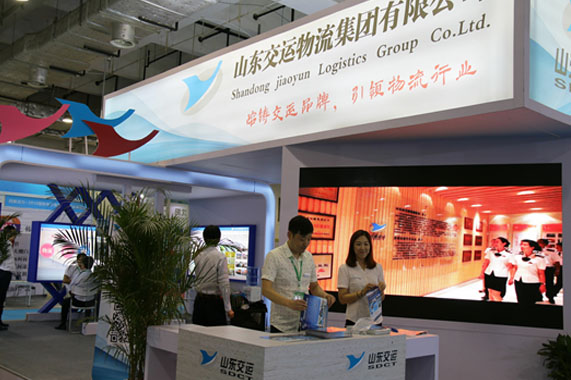 山東交運物流集團以60㎡特裝展臺形式參展,采用文字描述、圖片展示、視頻播放、立體模型制作相結合的展示方式,詳細推介了在運輸板塊、物流園區、倉儲配送、供應鏈物流、港航、集裝箱管理、貿易等物流領域的規劃、產業布局及業務運作情況。